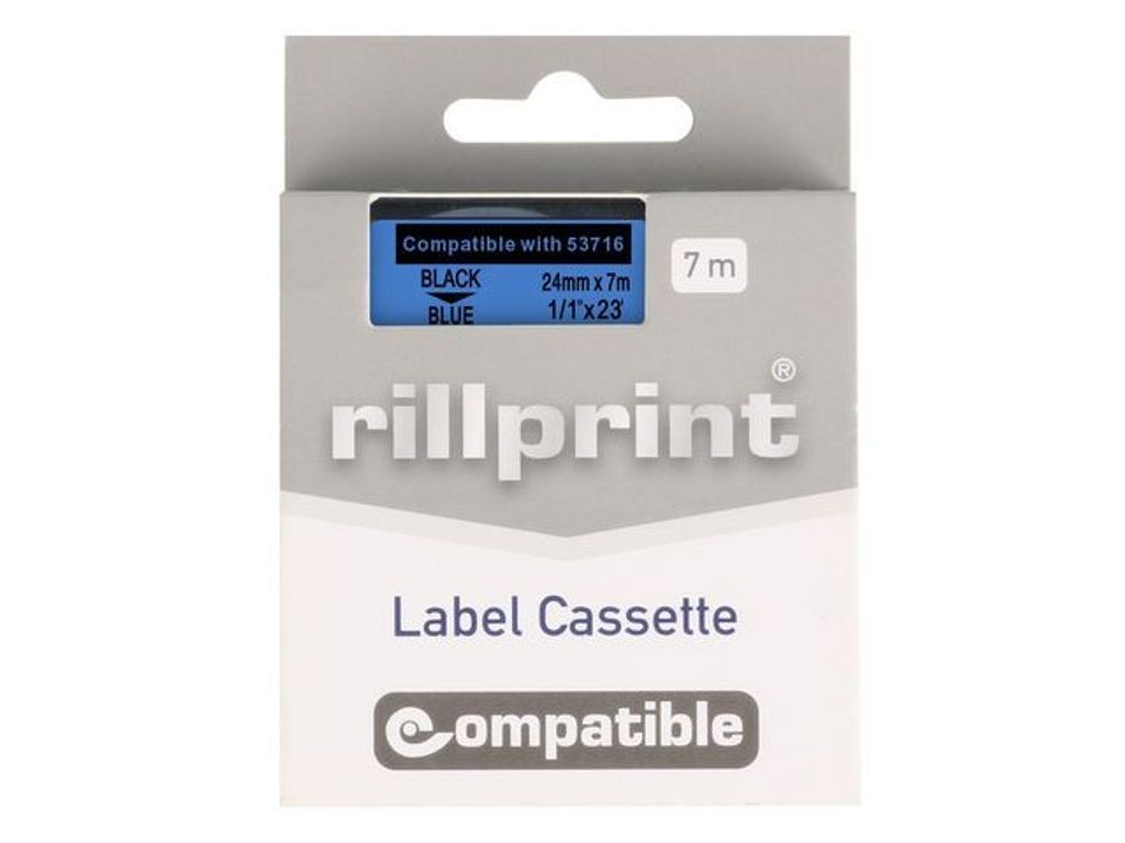 Tape 24mm svart på blå - Kompatibla med: DYMO LabelMANAGER 500TS, PnP - Självhäftande polyestertejp för snabb och enkel applicering - Inkluderar: 1 rulle - Mått: 24 mm x 7 m - Etiketterna kan tas bort utan att lämna kvar limrester - Fäster på nästan alla rena och släta ytor inklusive plast, papper, metall, trä och glas - Ta enkelt bort skyddsfilmen för snabb och enkel applicering - Vattentåligt - UV-resistent - Temperaturbeständig - Färg: Svart på Blå - Består till 58% av återvunnet material - Innehåller inte PVC