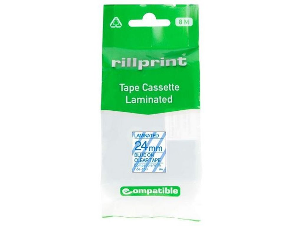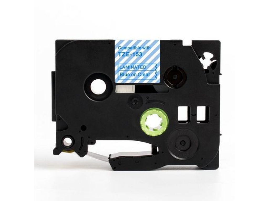 Tape 24mm TZe-153 Blå på Klar. TZ-tejper tål kraftig nötning och långvarig exponering för elementen - Mått: 24 mm x 8 m - Färg: Blå text på klar botten - Kompatibla med: P-Touch PT-1400, 1600, 1650, 2400, 2430, 2700, 2710, 550, 7500, 7600, 9500, 9700, 9800 - Innehåller inte PVC