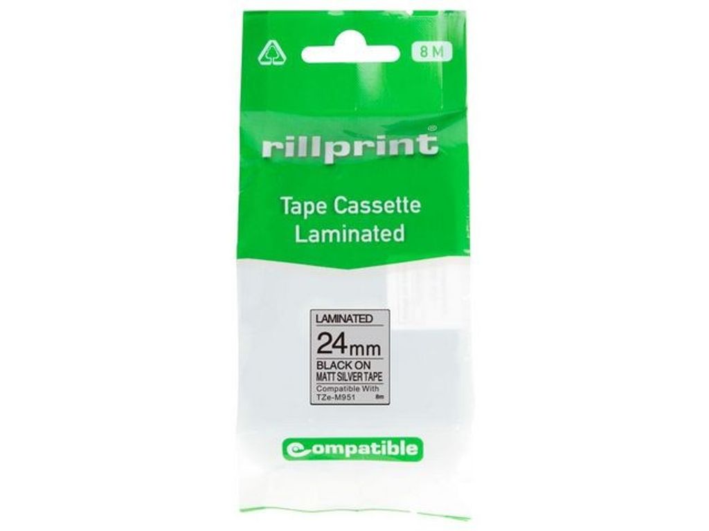 TZ-tejper tål kraftig nötning och långvarig exponering Tape 24mm TZe-M951 M-Svart på Silver. TZ-tejper tål kraftig nötning och långvarig exponering för elementen - Mått: 24 mm x 8 m - Färg: M-Svart text på silver botten - Kompatibla med: P-Touch P-Touch Cube, PT-D600VP, PT-D800W, PT-E550WVP, PT-H500, PT-P700, PT-P750W, PT-P900W, PT-P950NW, PT-2420PC, PT-2430PC, PT-2470, PT-2480, PT-2730VP, PT-3600, PT-7500VP, PT-7600VP, PT-9600, PT-9700PC, PT-9800PCN, PT-P750TDI - Innehåller inte PVC