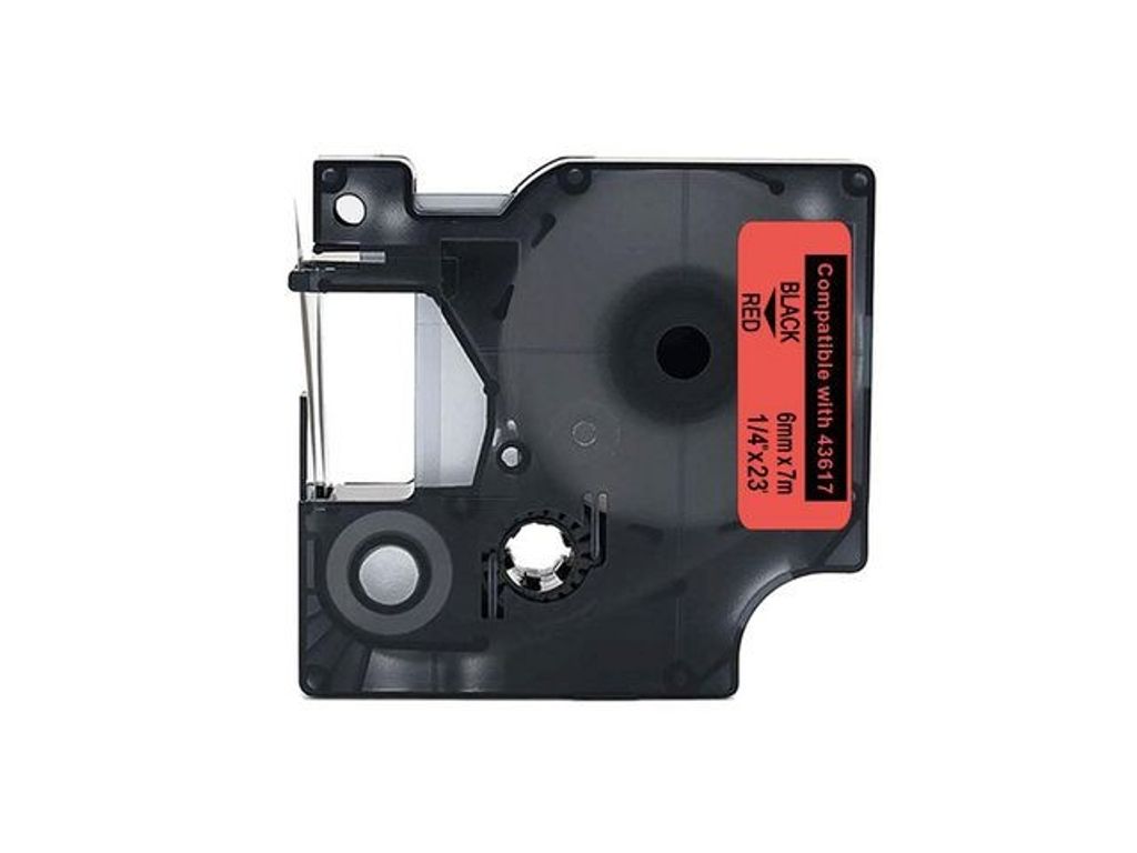 Tape 6mm Svart på Röd - Kompatibla med: DYMO LabelMANAGER - Självhäftande polyestertejp för snabb och enkel applicering - Inkluderar: 1 rulle - Mått: 6 mm x 7 m - Etiketterna kan tas bort utan att lämna kvar limrester - Fäster på nästan alla rena och släta ytor inklusive plast, papper, metall, trä och glas - Ta enkelt bort skyddsfilmen för snabb och enkel applicering - Vattentåligt - UV-resistent - Temperaturbeständig - Färg: Svart på Röd - Består till 78% av återvunnet material - Innehåller inte PVC