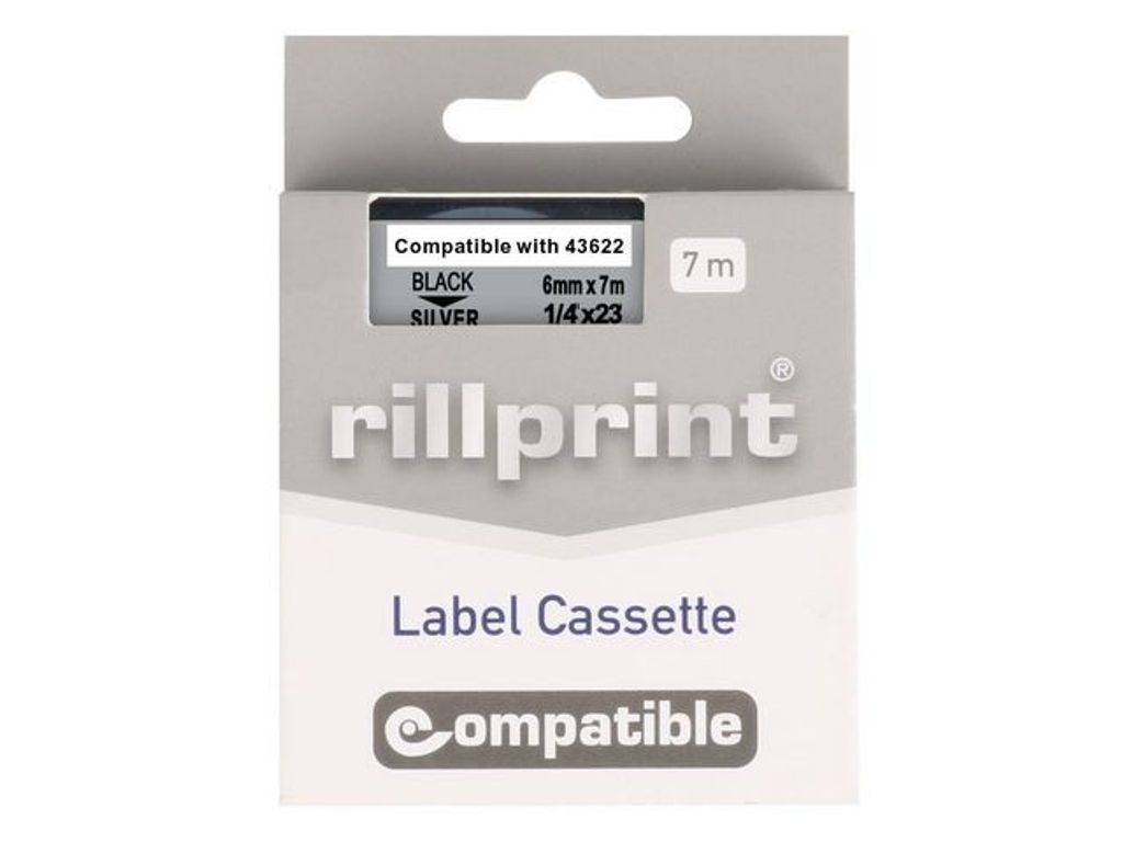Tape 6mm Svart på Silver - Kompatibla med: DYMO LabelMANAGER - Självhäftande polyestertejp för snabb och enkel applicering - Inkluderar: 1 rulle - Mått: 6 mm x 7 m - Etiketterna kan tas bort utan att lämna kvar limrester - Fäster på nästan alla rena och släta ytor inklusive plast, papper, metall, trä och glas - Ta enkelt bort skyddsfilmen för snabb och enkel applicering - Vattentåligt - UV-resistent - Temperaturbeständig - Färg: Svart på Silver - Består till 78% av återvunnet material - Innehåller inte PVC