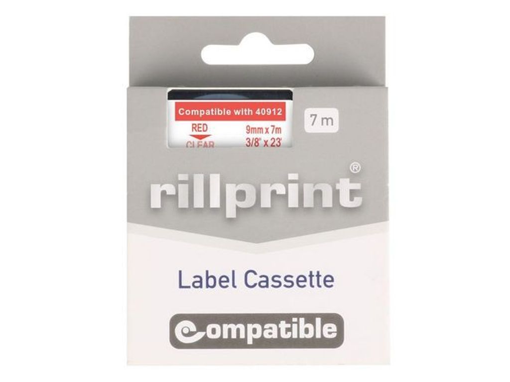 Tape 9mm Röd på Klar - Kompatibla med: DYMO LabelMANAGER 150 sats, 350, 350D, 450, 450D, PC, LabelPOINT 250, 250 satsfodral, 350, 350 satsfodral - Självhäftande polyestertejp för snabb och enkel applicering - Inkluderar: 1 rulle - Mått: 9 mm x 7 m - Etiketterna kan tas bort utan att lämna kvar limrester - Fäster på nästan alla rena och släta ytor inklusive plast, papper, metall, trä och glas - Ta enkelt bort skyddsfilmen för snabb och enkel applicering - Vattentåligt - UV-resistent - Temperaturbeständig - Färg: Röd på Klar - Består till 69% av återvunnet material - Innehåller inte PVC