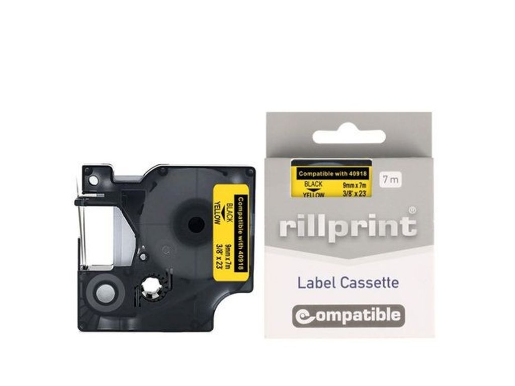 Tape 9mm Svart på Gul - Kompatibla med: DYMO LabelMANAGER 150 sats, 350, 350D, 450, 450D, PC, LabelPOINT 250, 250 satsfodral, 350, 350 satsfodral - Självhäftande polyestertejp för snabb och enkel applicering - Inkluderar: 1 rulle - Mått: 9 mm x 7 m - Etiketterna kan tas bort utan att lämna kvar limrester - Fäster på nästan alla rena och släta ytor inklusive plast, papper, metall, trä och glas - Ta enkelt bort skyddsfilmen för snabb och enkel applicering - Vattentåligt - UV-resistent - Temperaturbeständig - Färg: Svart på Gul - Består till 69% av återvunnet material - Innehåller inte PVC