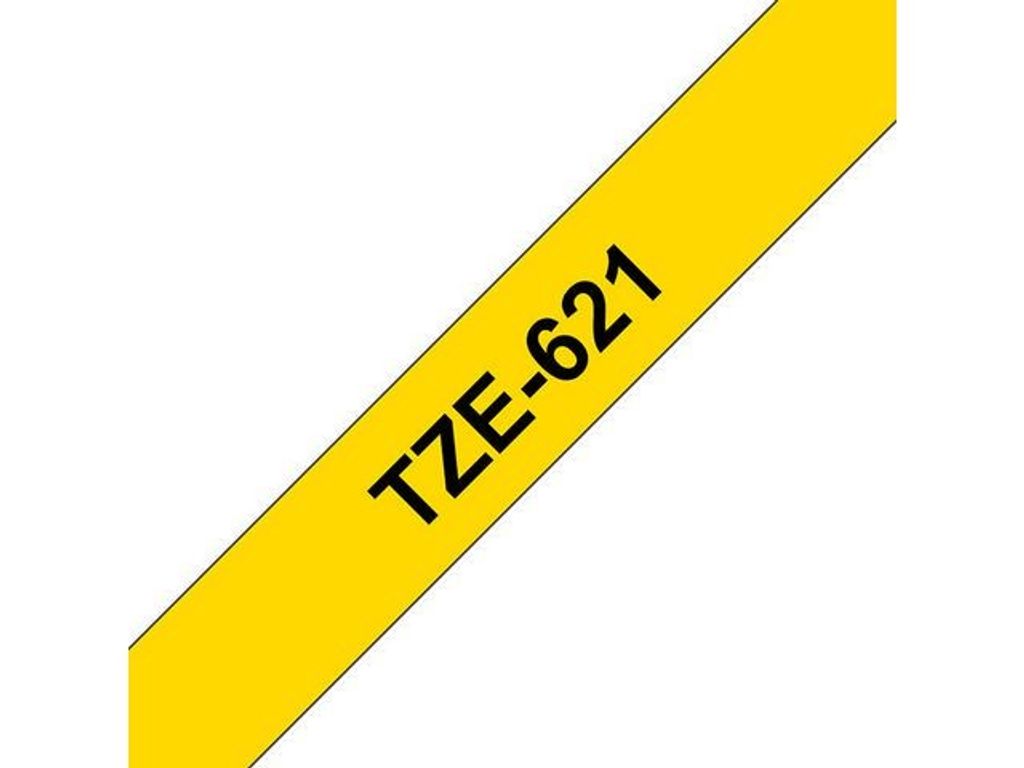 Brothers laminerade TZe-621-tejp är idealisk för användning i vardagen med en rad Brother P-Touch-etikettskrivare för att skapa gula etiketter med svart tryck som skiljer sig från mängden. Den här märkningstejpen är kompatibel med Brother P-Touch-etikettskrivare, använder direkt termisk teknik och har ett extra starkt klister. Använd inomhus eller utomhus på jämna eller gropiga, ojämna ytor. Lamineringen gör etiketterna hållbara med mindre slitage. En ljus bakgrund ger enastående kontrast för svartvita utskrifter, vilket gör att dessa etiketter utmärker sig i miljöer med svag belysning eller där det är viktigt att fånga uppmärksamhet. - Extra starkt klister - Laminerad tejp - Mått: 9 mm x 8 m - Färg: Svart text på gul botten - Kompatibla med: P-Touch PT-1000, 1005, 1010, 1080, 1090, 1100, 1170, 1180, 1190, 1230, 1250, 1260, 1280, 1290, 1600, 1650, 18, 1830, 1850, 1880, 1950, 1960, 2030, 2100, 2110, 2420, 2430, 2460, 2470, 2480, 2700, 2710, 2730, 7100, 7500, 7600, 900, 9500, 9700, 9800, D200, E300, PT-GL-100, PT-H100, H105, H300, H75