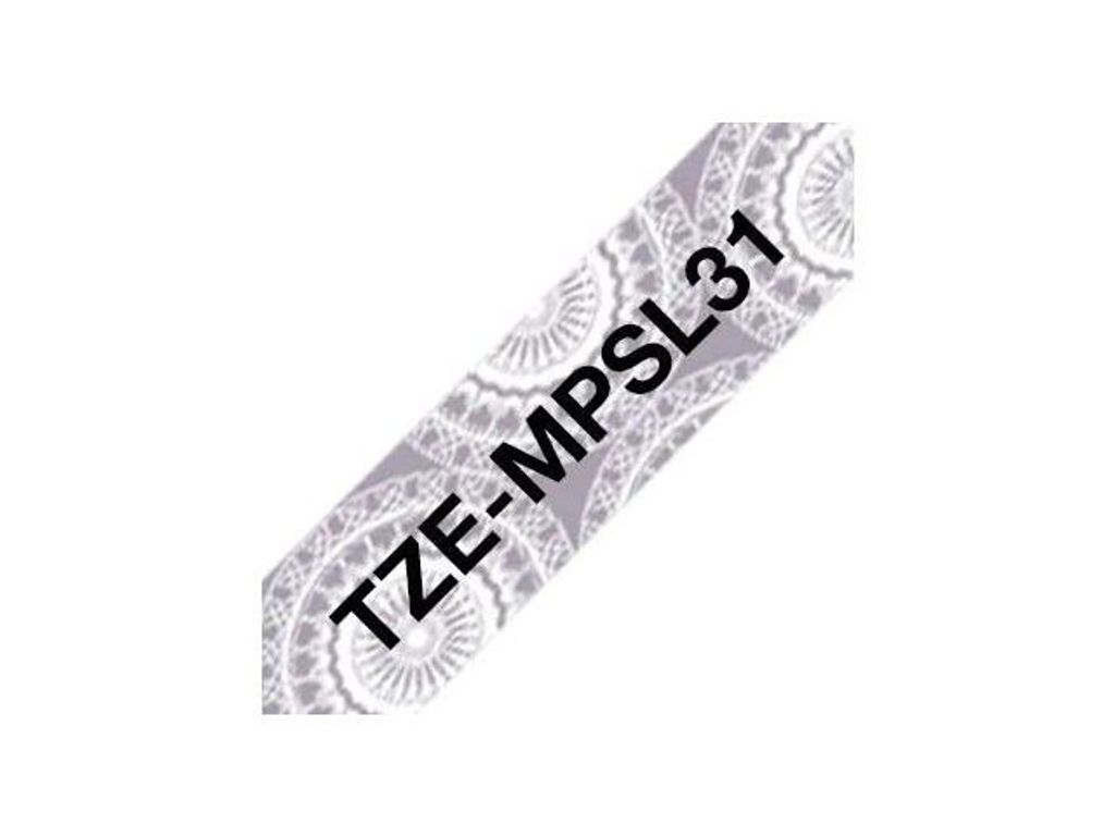 Kompatibel med P-touch-märkmaskin som har TZ- eller TZe-logotypen på kassettkåpan. Visa dina etiketter lite kärlek med TZeMPSL31 etikettape. Etikettapen silver på spetsmönster är perfekt till pyssel, kort och presenter. Lamineringen garanterar att dina etiketter skyddas mot skada. - Brother TZeMPSL31 etikettape - Svart på silver - 12 mm