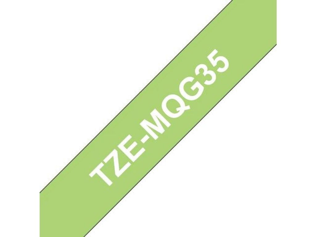 Brother original TZeMQG35 12 mm etikettape fungerar perfekt med Brother P-touch märkmaskiner. Den laminerade, vit på limegrön, tapen är lätt att läsa och passar för märkning i hemmet, på kontoret eller andra arbetsplatser. - Brother TZeMQG35 etikettape - Vit på limegrön - 12 mm
