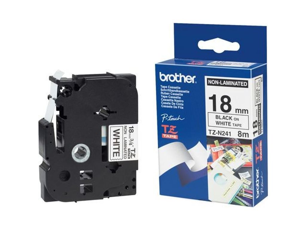 Kompatibelt med P-touch-märkmaskinen som har TZ- eller TZe-logotypen på kassettkåpan. Etikettapen, som är olaminerad, är perfekt för all typ av märkning, oavsett om det gäller kontoret, verkstaden eller i ditt hem. Brother TZeN241 tape är kompatibel med många av våra P-touch-märkmaskin. Tapen går snabbt och enkelt att installera. - Brother TZeN241 tape - Svart på vit - 18 mm