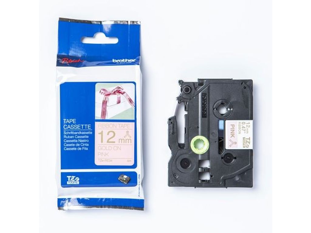 Gör presenter, kort och hantverk mer personliga med BrotherTZeRE34 original satinband. Med TZeRE34 får du snabba och tillförlitliga resultat, och skarpa professionella utskrifter. Kompatibel med P-touch-märkmaskin som har TZ- eller TZe-logotypen på kassettkåpan. - Brother TZeRE34 satinband - Guld på rosa - 12 mm