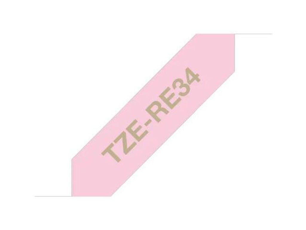 Beskrivning av Tape BROTHER TZERE34 12mm Guld på Rosa