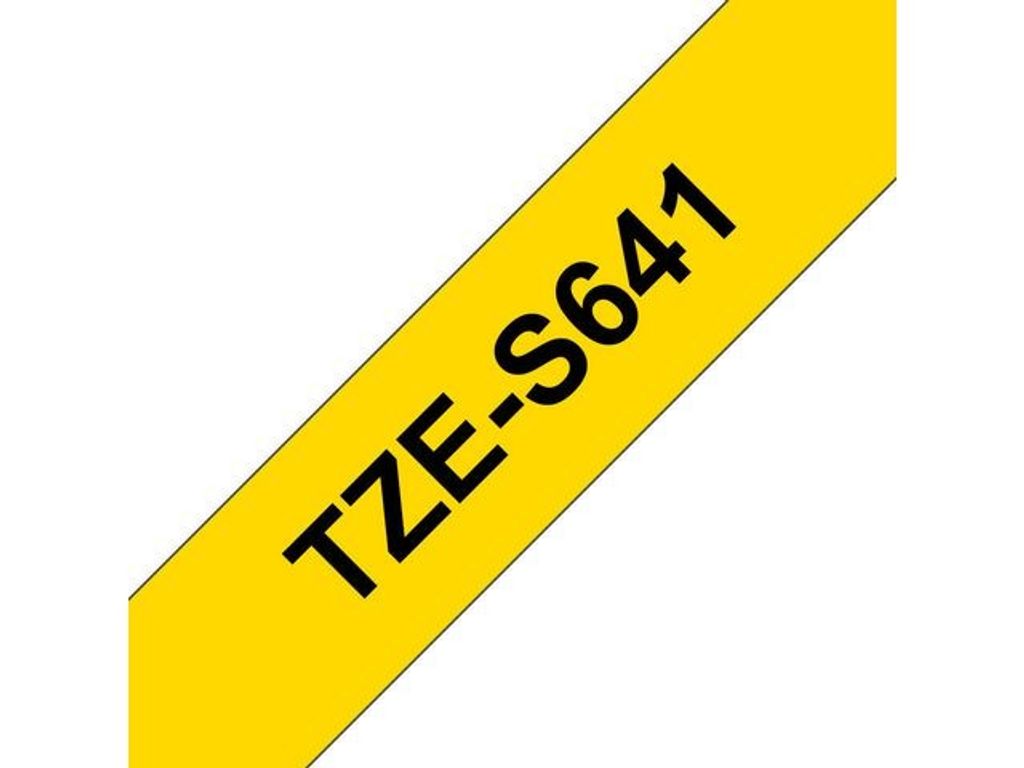 TZeS641 etikettape är kompatibel med flera Brother P-touch-märkmaskiner. Den laminerade etikettapen är mångsidigt tack vare den lättlästa färgkombinationen svart och gul. Etiketterna är praktiska såväl hemma som på jobbet, liksom i andra sammanhang. - Brother TZeS641 etikettape - Svart på gul - 18 mm