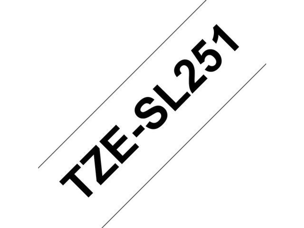 En självlaminerande Pro Tape som är bland annat utvecklad för identifiering av nätverkskablar TZe-SL251 24 mm svart på vit självlaminerande Pro Tape är bland annat utvecklad för identifiering av nätverkskablar och har speciella lim- och etikettegenskaper som säkerställer att dina etiketter sitter fast ordentligt på sladdar och kablar. Kompatibel med utvalda P-touch-modeller som tar 24 mm och 36 mm TZe-tape. - Brother TZe-SL251 självlaminerande tape - Svart på vit - 24 mm - För kabelmärkning