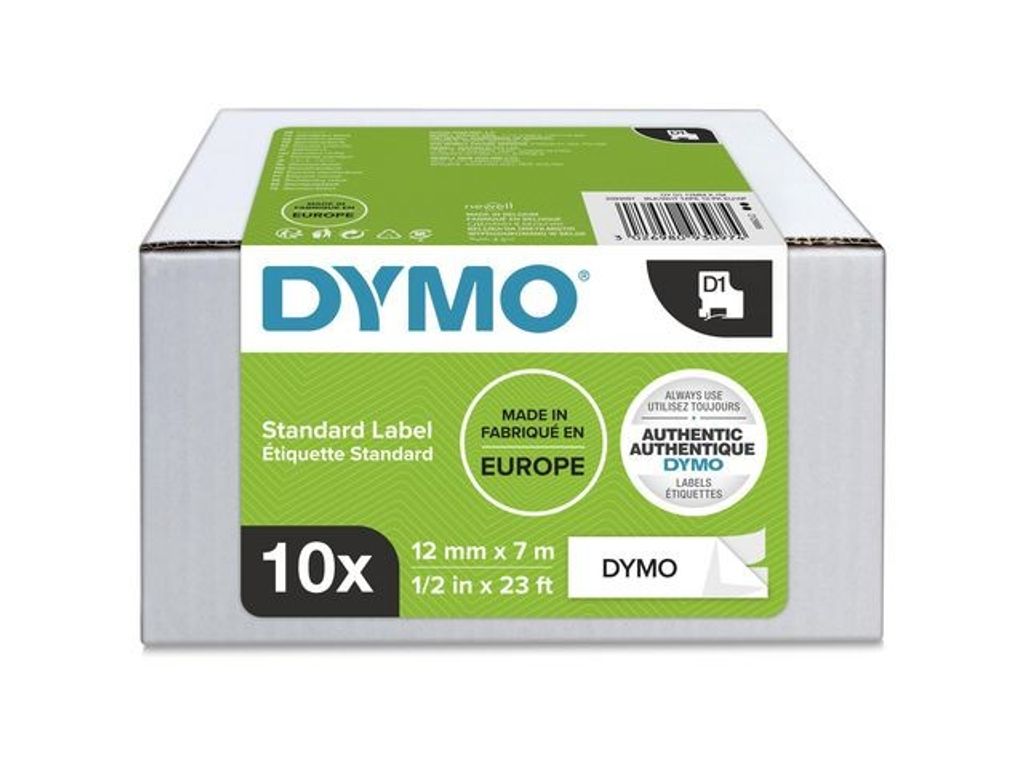 Beskrivning av Tape DYMO D1 12mm svart på vit 10/fp