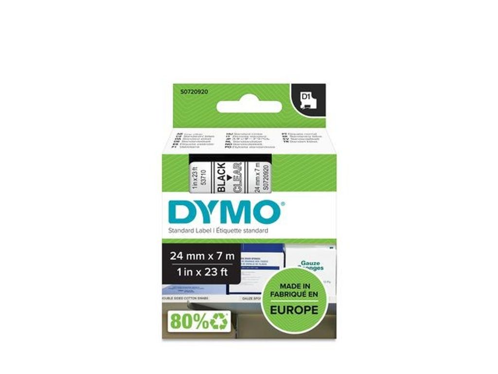 Beskrivning av Tape DYMO D1 24mm svart på klar