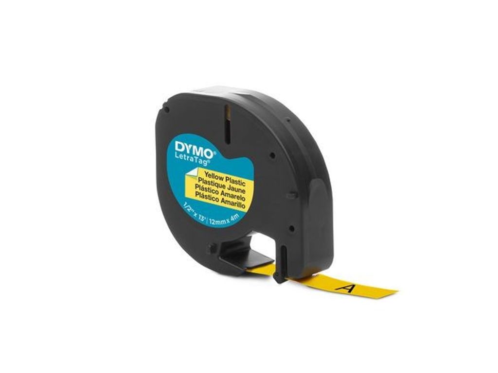 Organisera dina skrivpapper, filer och dokument med dessa hållbara etiketter från Dymo. Den slitstarka designen kan torkas av och är enkelt att fästa. Kassetten DYMO® LetraTAG™ på 12 mm matar ut en hållbar och slitstark plasttejp med svart text på gul botten för etiketter som håller länge. LetraTAG™-tejp med text som har skrivits ut med termisk överföringsteknik – varken bläck eller toner behövs. Etiketterna kan torkas av, och de är vattentåliga och slitstarka. De används bäst inomhus för att organisera hemmet, dokument eller stationär utrustning. Ta bort etikettens skyddsfilm för snabb och enkel applicering på de flesta ytor. Lämnar inga limrester. Den här produkten är kompatibel med alla LetraTAG-märkmaskiner. - Kompatibla med: DYMO® LetraTag™ LT-100H, LT-100T - Plasttejp som är lätt att applicera - Färg: Svart text på vit botten - Inkluderar: 1 rulle - Mått: 12 mm x 4 m - Slitstarka och tåliga etiketterna för utomhusbruk som kan torkas av - Tål vatten och de flesta mildare lösningsmedel - Varken bläck eller toner behövs - Hållbara - Består till 55% återvunnet material -