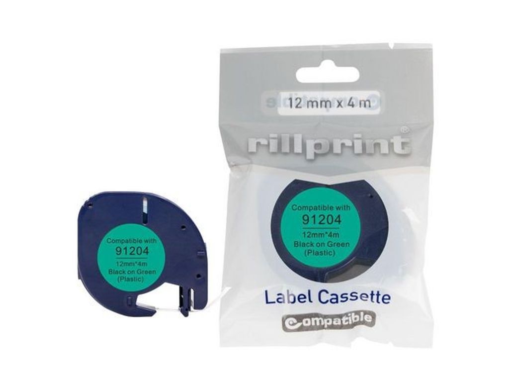 Tape Plast 12mmx4m svart på grön - Kompatibla med: DYMO® LetraTag™ LT-100H, LT-100T - Inkluderar: 1 rulle - Mått: 12 mm x 4 m - Rivhållfasta, tåliga och avtorkbara etiketter för inomhusbruk - Tål vatten och de flesta mildare lösningsmedel - Inget behov av bläck och toner - Hållbara - Färg: Svart på Grön - Innehåller inte PVC
