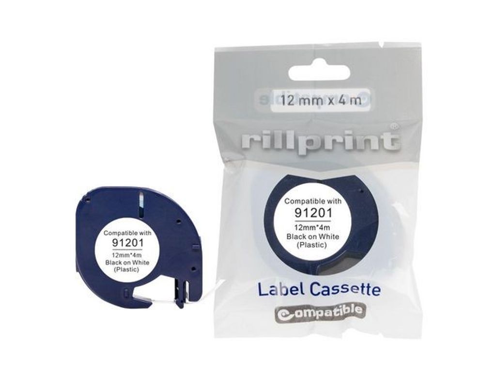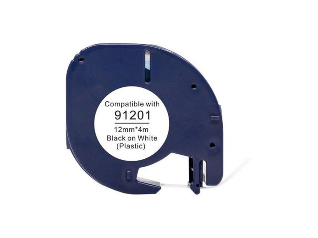 Tape Plast 12x4mm Svart på Vit - Färg: Svart text mot vit bakgrund - Inkluderar: 1 rulle - Mått: 12 mm x 4 m - Rivhållfasta, tåliga och avtorkbara etiketter för inomhusbruk - Tål vatten och de flesta mildare lösningsmedel - Inget behov av bläck och toner - Hållbara - Kompatibla med: DYMO® LetraTag LT-100H, LT-100T - Innehåller inte PVC