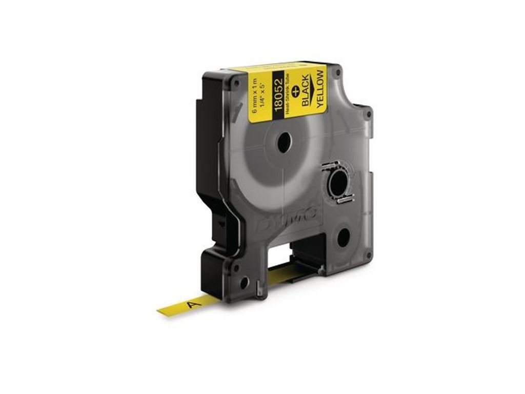 Beskrivning av Tape Rhino krympslang 6mm svart på gul