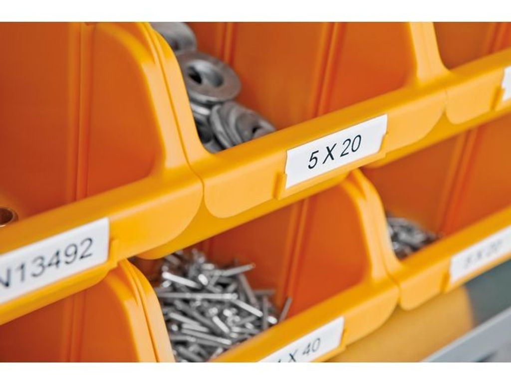 Professionella etiketter med polerad finish - perfekta för paneler, block, höljen, hyllor, tunnor, balkar och mycket mer. Beständighet mot kyla/värme: -40 °C till 150 °C Längd: 5,5 m - UL-märkt enligt UL 969 - överensstämmer med RoHS Den permanenta präglingstejpkassetten i polyester DYMO® Rhino på 9 mm matar ut slitstark polyestertejp med vit text på grön botten för industrietiketter som ska hålla länge. Perfekt för inomhus- och utomhusbruk vid märkning av soptunnor, paneler, balkar eller hyllor. Texten på Rhino-etiketter skrivs ut med termisk överföringsteknik - varken bläck eller toner behövs. De är resistenta mot vatten, UV-ljus, kemikalier och olja, och har en stark vidhäftning som är perfekt för industriell användning. De tål temperaturer mellan -40 och 150 grader Celsius. Dra av etikettens skyddsfilm för enkel applicering. - Stark vidhäftning för industriell användning - Permanent präglingstejp i polyester - Färg: svarttext på vit botten - Inkluderar: 1 rulle - Mått: 9 mm x 3 m - Kompatibla med: DYMO® RHINO - Beständig mot värme/kyla - Beständig mot UV-ljus - Oljebeständig - Vattentåligt - Kemikaliebeständig - Ta enkelt bort skyddsfilmen för snabb och enkel applicering - Följer ROHS