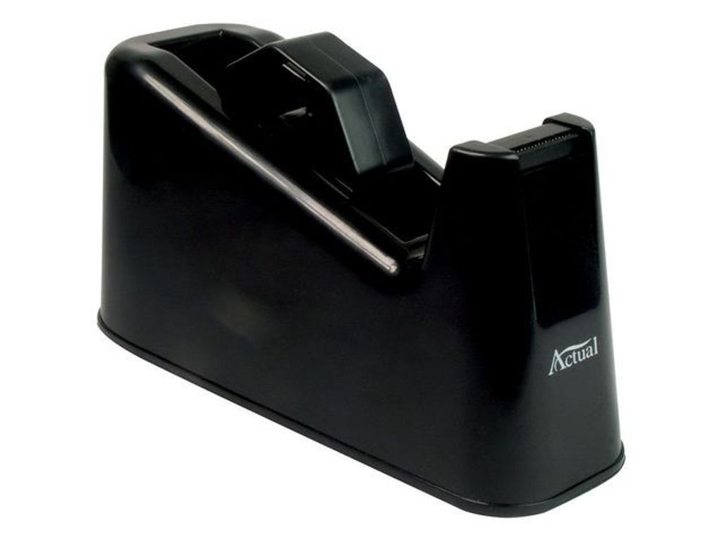 Använd tejphållaren för att snabbt klippa förpackningstejp på ett enkelt sätt när du försluter paket och skrymmande kuvert. En hållbar och praktisk tejphållare som är perfekt för kontoret och hemmet. Metallkniven säkrar ett rent snitt och hållarens vikt samt basen av gummi gör att den står stadigt vid användning.' - Kompatibel med tejprullar med mått på max 25 mm x 66 m - Har metallkniv och gummibas - Material: 100 % återvinningsbar plast - Färg: Svart - Vikt: 1,7 kg