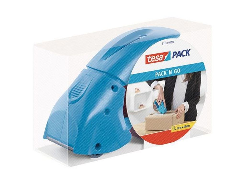 Handhållaren Pack ’n Go från tesa är enkel att använda och är perfekt för den som packar ofta. Med ett lättanvänt grepp och en stadig metallram är tejphandhållaren Pack ’N Go från tesa den idealiska lösningen för alla dina förpackningsbehov. Dess robusta metallram och vassa kniv kompletteras av en flexibel tejptryckande trasa och ett gjutet plasthandtag. Handhållaren från tesa är lätt att hålla tack vare det ergonomiskt utformade pistolgreppet och den är perfekt för att säkert försegla kartonger och olika slags paket. Hållaren kan användas med tejprullar med en maximal bredd på 50mm och en maximal längd på 66m. - Mått: 171 x 68 x 115mm - Maximal tejpbredd: 50mm - Maximal tejplängd: 66m - Färg: blå