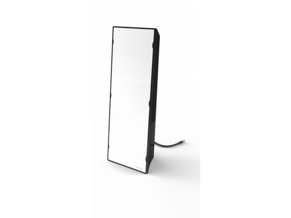 Kombinationen av två typer av Osram-lysdioder ger dig en optimal och flexibel ljuskvalitet i enlighet med de senaste ljusrekommendationerna: LÄGE 1: Berikat vitt ljus på de effektivaste blå våglängderna i ”max”-läget för din ljusterapibehandling. Det vita ljuset blir varmare (orangegult) när du minskar intensiteten för komfortanvändning som skrivbordslampa eller extralampa hela dagen efter din ljusterapibehandling (30 till 60 min per dag). LÄGE 2: Specifikt mjukt blått ljus, lika intensivt som intensivt vitt ljus. Läge 3: Bakgrundsbelysning hela dagen efter din ljusterapisession. Faktum är att våra melanopsinganglieceller, vars roll är avgörande för regleringen av vår biologiska klocka, är mycket känsliga för blå våglängder (460 till 485 nm). Blått monokromatiskt ljus kan alltså vara lika effektivt som betydligt intensivare vitt ljus. - Brinntid 30 000 timmar. - 2 års garanti. -