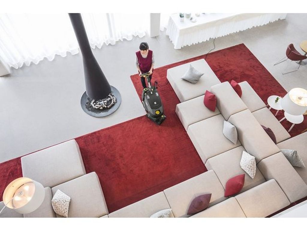 Kärcher BRC 40/22 textilvårdsmaskin för både vanlig sprayextraktion och städning mellan varven. Maskinen är lättmanövrerad och lämplig att använda på meddelstora ytor upp till 1 000 m². rengöringshuvudet kan vridas med ratten och underlättar rengöring av områden som annars kan vara svåra att nå. Integrerad sopbehållare som samlar upp löst smuts så som hår, damm och andra partiklar. - Ytkapacitet (grund-/underhållsrengöring iCapsol): 500 / 900 m²/tim - Luftmängd: 47 l/s - Vakuum: 299 / 30 mbar/kPa - Spoltryck, tillfällig rengöring: 3,5 bar - Spoltryck, djuprengöring: 7 bar - Spolgrad, tillfällig rengöring: 0,38 l/min - Spolgrad, djuprengöring: 2,5 l/min - Arbetsbredd, borste: 40 cm - Arbetsbredd, sug: 48 cm - Vattenbehållare: 22 / 19 L - Effekt turbin: 1119 W - Effekt borste: 400 W - Vikt: 65 kg - Mått (L x B x H): 889 x 470 x 1118 mm