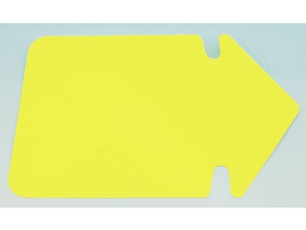 Beskrivning av Textkartong pil 130x90mm fluor gul 25/fp Dubbelsidig textkartong för skyltning, hobby mm. Fluorescerande färg för hög synbarhet. Kraftig kvalitet