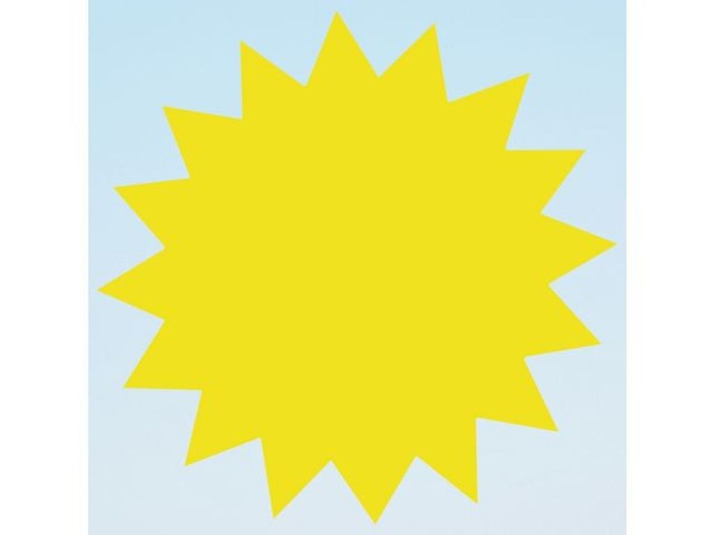 Beskrivning av Textkartong stjärna 180mm gul 25/fp Dubbelsidig textkartong för skyltning, hobby mm. Fluorescerande färg för hög synbarhet. Kraftig kvalitet