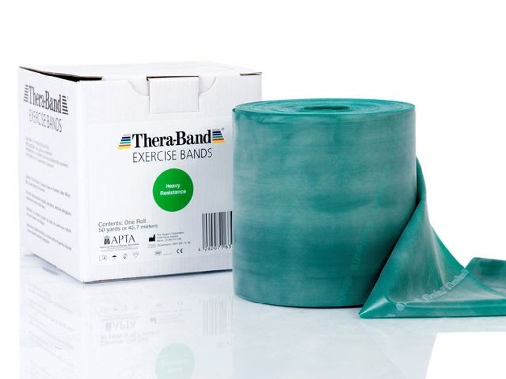 Träningsband på rulle som lätt klipps i önskade längder. Thera-Band introducerades av Medema på 70-talet och har sedan dess varit en viktig del inom både rehabilitering och träning. Träningsbanden kan användas för att utföra mängder av olika muskelstärkande övningar. Thera-Band passar alla former av muskelträning, oavsett muskelstatus eller diagnos. Träningsbandet levereras på rulle och klipps därefter till önskade längder. - Längd: 45,5 m - Färg grön = hårt motstånd