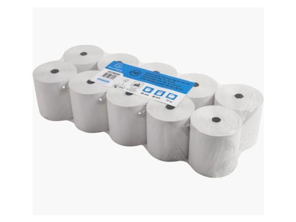 Beskrivning av Thermorulle bisf.fri 80x70x12mm 72m Bisfenolfri thermorulle. - Arkivbeständig i 10 år - Mått: 80x70x12mm - Längd: 72m - Vikt: 48 gram