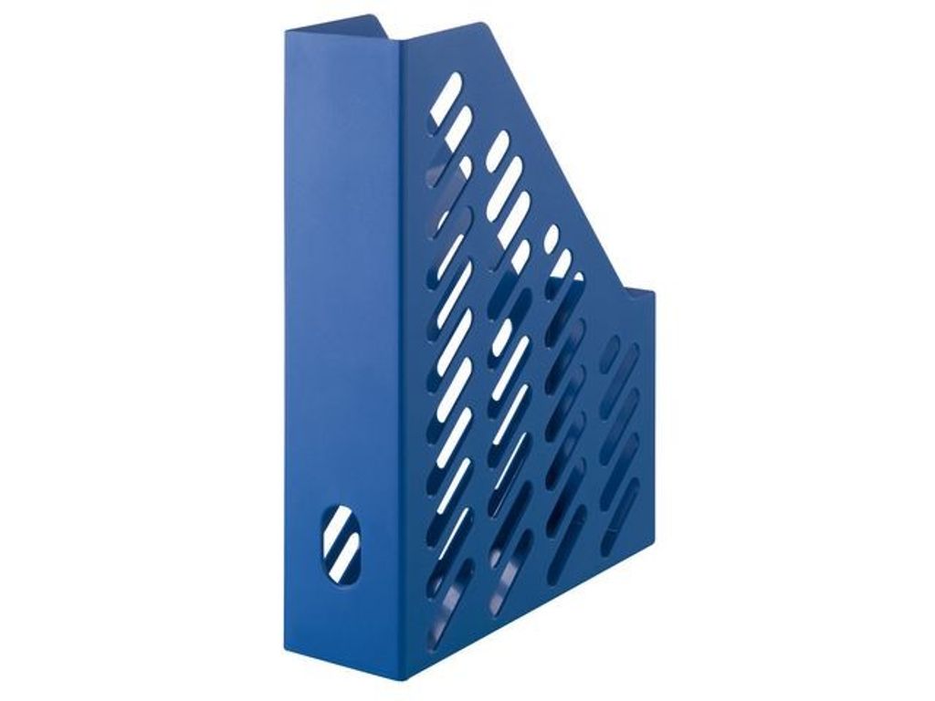 Tidskriftsamlaren KLASSIK KARMA ifrån HAN hjälper till att hålla ordning och reda på skrivbordet eller i hyllan. Tidskriftsamlaren är ett miljövänligare alternativ då den är gjord av återvunna plastprodukter och därmed tilldelad miljömärket Den blå ängeln. Med ett praktiskt fingerhål och en extra hög front håller den dokumenten säkert på plats. - Lämplig för lagring av dokument upp till A4 / C4-storlek - Kapacitet: 70 mm - Yttermått (B x D x H): 76 x 246 x 315 mm - Framhöjd: 148 mm - Material: 100% återvunnet material - Färg: Blå (ekoblå)