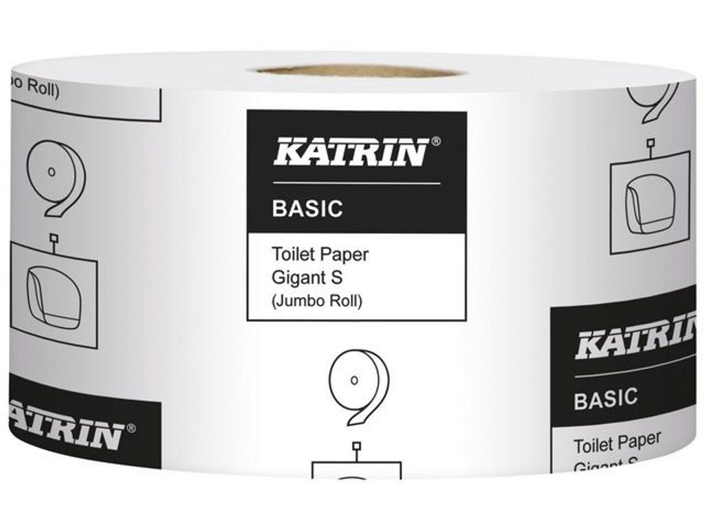 Naturvitt toalettpapper för basbehov, anpassad för enklare användning Katrin Basic Gigant är vårt enklaste toalettpapper för offentliga miljöer. Du får ett naturvitt toalettpapper som uppfyller basbehovet för ett offentligt hygienutrymme. - 1-lagers, naturvit - Uppfyller: ISO 9001, ISO 14001 - Pappersvikt: 24 g/m² - Vikt (leverans): 660g - Längd per rulle: 265m - Rullbredd: 98mm - Diameter: 185mm - Kärnans diameter: 61mm - Material: 85% återvunna fiber - Svanen: licensnummer 30050006