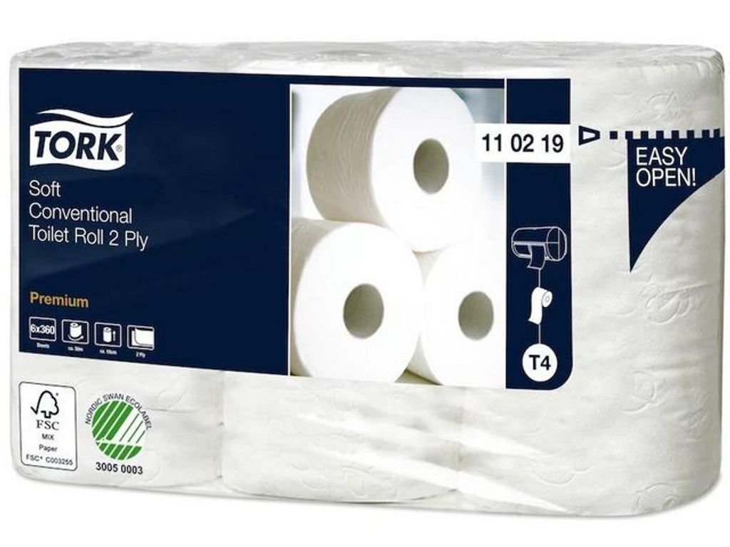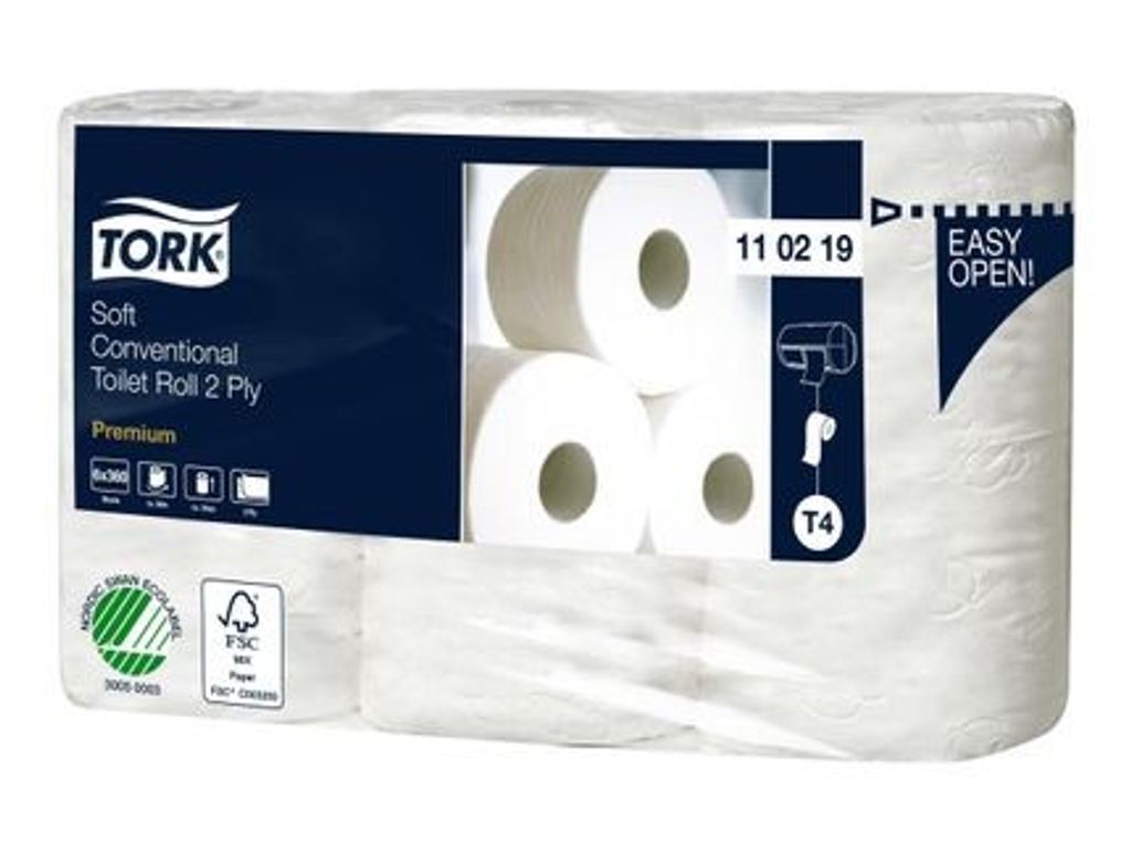 Beskrivning av Toalettpapper TORK Pre T4 2-lag vit 6/fp