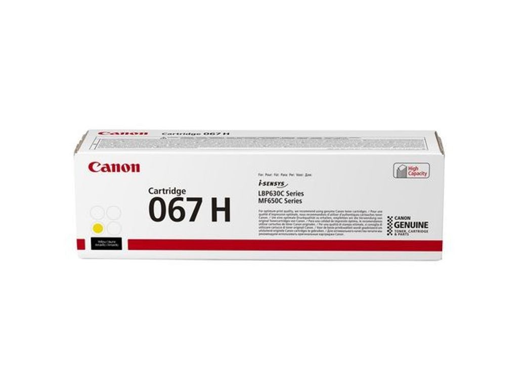 Beskrivning av Toner CANON 067H 2,35K gul Toner CANON 067H 2,35K gul - Kapacitet: ca 2 350 sidor - Passar till: i-SENSYS LBP-633Cdw,LBP-631Cw,MF-657Cdw, MF-655Cdw,MF-651Cw