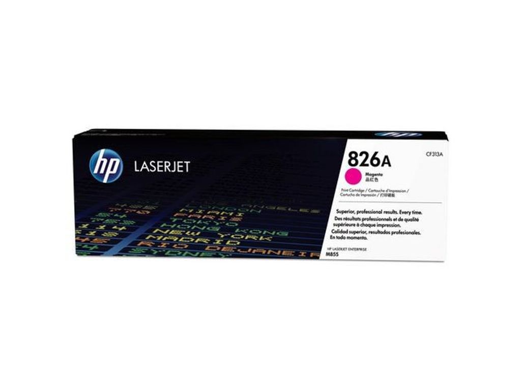 Beskrivning av Toner HP CF313A 826A 31,5K magenta Denna HP-toner ger alltid pålitliga utskrifter med hög kvalitet och professionella standardutskrifter. Toner HP CF313A magenta. Passar till: HP Color LaserJet Enterprise M855 serien. Räcker till ca 31500 sidor vid 5% täckning.