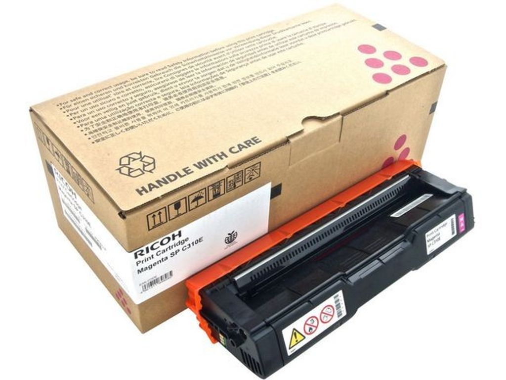 Fyll på skrivaren med tonern Ricoh C310E för att säkerställa tydliga och professionella resultat. Fyll på skrivaren med tonern Ricoh för att säkerställa tydliga och professionella resultat. Den här bläckpatronen innehåller magentafärgad toner och har en kapacitet på 2 000 sidor med 5 % täckning. - Färg: magenta - Kapacitet på 2 000 sidor - Sidkapacitetstäckning: 5 % - Kompatibel med: Aficio SP C220N, SP C220S, SP C221N, SP C221SF, SP C222DN, SP C222SF, SP C240