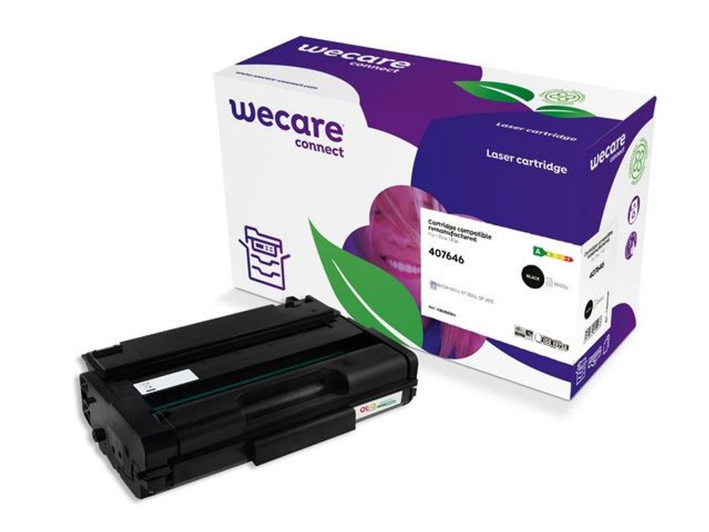 Beskrivning av Toner WECARE RICOH 406990 6,4K svart Skriv ut dina dokument med dessa klara, starka färger utan kladd! Kapacitet: 6 400 sidor - Passar till: - Ricoh SP3500N - SP3500SF - SP3510DN - SP3510SF - Innehåller inte PVC