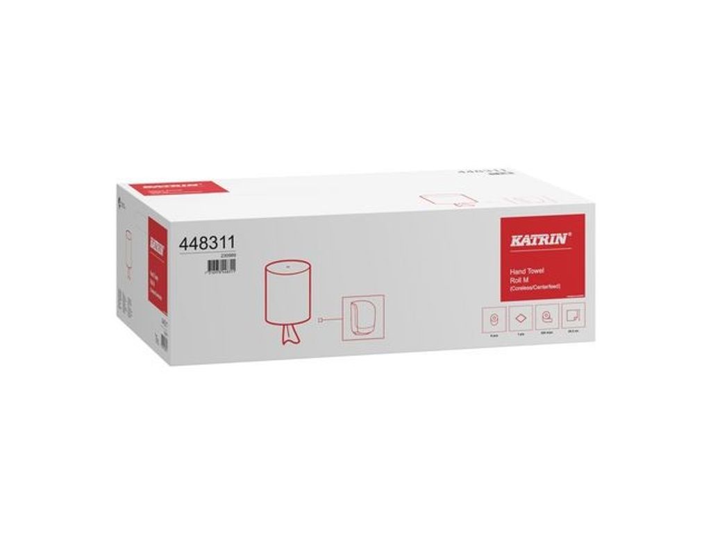Handtorkrulle av hög kvalitet. Hög styrka för effektiv torkning. Coreless är Katrins mest använda produkt då den har alla certifieringar för att passa i i offentliga köksmiljöer. Rullen är hylslös, vilket förenklar påfyllning av dispenser. Du får en väldigt populär produkt som inget kök kan vara utan. Hög kapacitet, tack vare mycket papper på rullen. Lämplig för låg till medelhög förbrukning. Fiberråvara: återvunna fiber och nyfiber. Andelen styrs av produktkraven och tillgång och kvalitet för optimal anvädning av råvaran. - 1-lagers, vit - Utan hylsa - Uppfyller: ISO 9001, ISO 14001 - Längd per rulle: 320m - Diameter: 190mm - Bredd: 205mm - Material: 75% återvunna fiber och nyfiber - Svanen: licensnummer 30050006