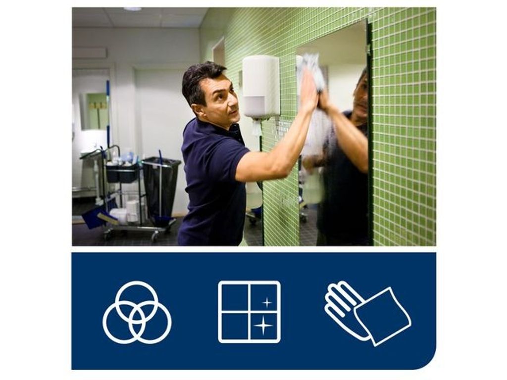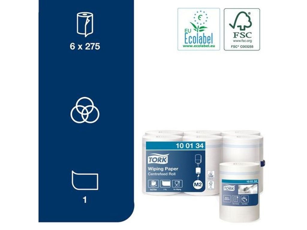 Perfekt för avtorkning av händer och lätt smutsade ytor, lämnar inga ränder eller ludd vid rengöring av glas. Ta hand om lättare städuppgifter och håll enkelt händerna rena med allround avtorkningspapper. Det mjuka och absorberande pappret är perfekt för svårhanterliga glasytor och blanka ytor, och lämnar inga ränder eller ludd efter sig. Använd det med Tork Dispenser Centrummatad med hög kapacitet för enkel enhandsutmatning, vilket kommer att göra personalen effektivare. Tork slutindikator hjälper till att visa när det är dags att byta rullar och förhindrar oönskade avbrott i personalens arbetsflöde. Kompatibel med Tork M2 dispensrar. - 1-lagers, vit - Advanced-kvalitet - System: Centrummatade rullar M2 - Rullens längd: 275m - Rullens bredd: 24,5cm - Diameter: 19cm - Material: återvunna fiber och nyfiber - FSC-märkt - EU Ecolabel: licensnummer SE/004/001