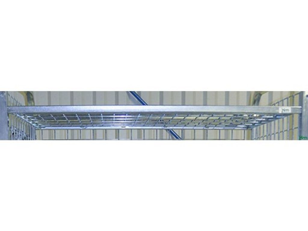 Beskrivning av Trådhylla medium fast Modul 300 Fast hylla som passar vagnarna i Modul 300-serien. Elförzinkad trådhylla som tål belastning upp till 100kg. Storlek M. - Belastning: 100kg - Storlek: 1245 x 615 x 20mm (LxBxH) - Färg: Elförzinkad - Vikt: 7kg -