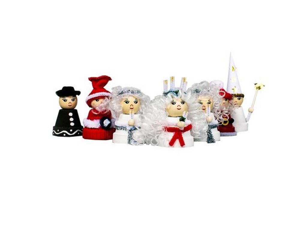 Träkulor med målade ansikten.