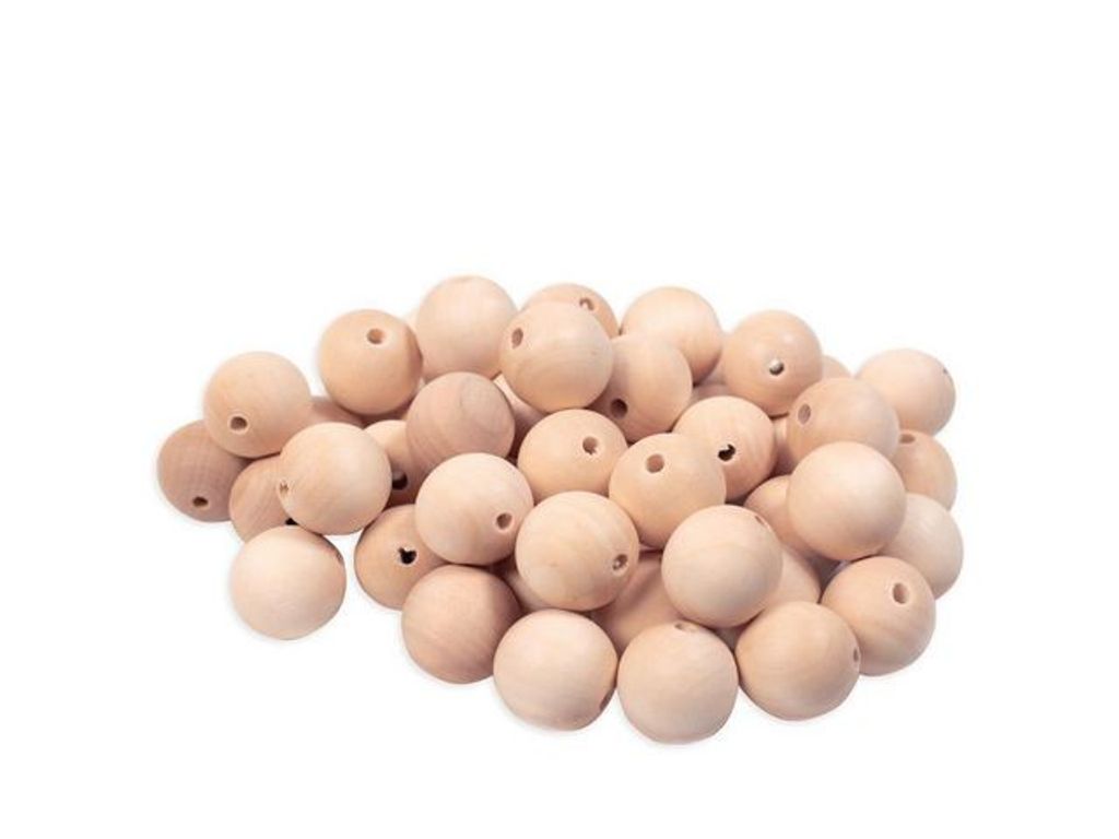 Naturfärgade träpärlor. Måla och trä på tråd eller limma ihop till roliga figurer. - Antal: 50/FP - Mått: håldiameter 25 mm, hål 1,5 mm - Material: FSC-certifierat trä Varning. Lämpar sig inte för barn under 3 år