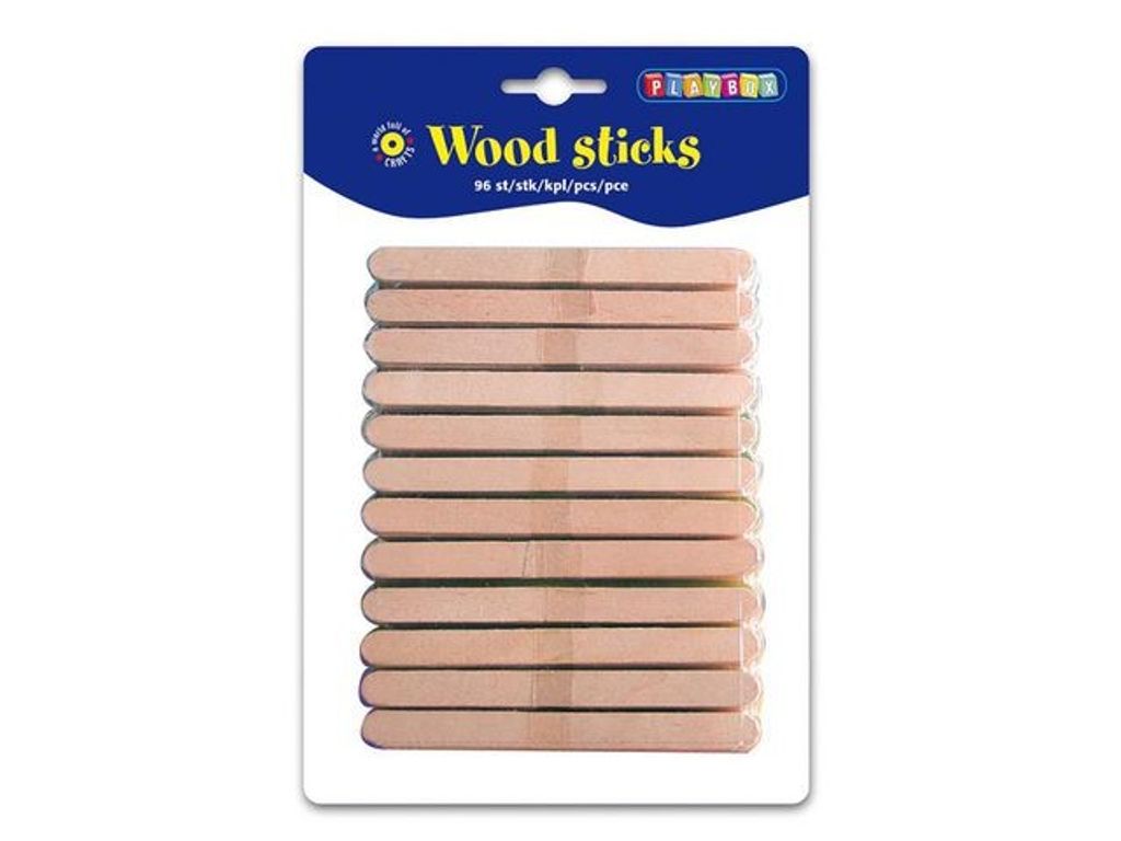 Träpinnar i form av glasspinnar som kan målas och användas till att bygga små hus eller figurer eller varför inte göra ett eget pussel med träpinnar? - Antal: 96/FP - Mått: 110x10 mm - Material: Trä
