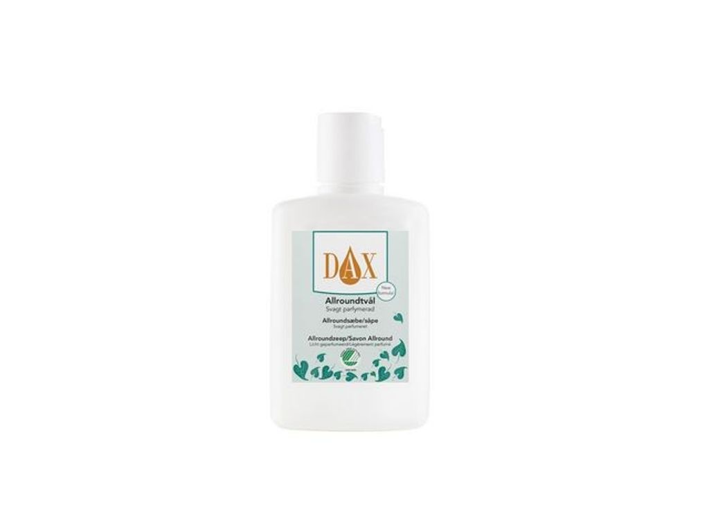 Skonsam mot huden, även vid frekvent användning, passar även till hårtvätt Händerna utsätts för extra mycket påfrestningar när huden exponeras för kyla och frekvent tvättande med tvål och varmt vatten, så det är viktigt att välja en mild och skonsam tvål. DAX Allroundtvål är en extra mild och krämig tvål som passar för såväl kroppstvätt som hårtvätt. Rengör huden varsamt utan att torka ut och lämnar en fräsch känsla. Produkten är miljömärkt med Svanen. - Mild kroppstvål rengör hela kroppen - Lätt, fräsch doft - Perfekt daglig rengöring utan färgämnen - Volym: 150 ml - pH-värde: ca 4,5 - Lukt: Parfymerad - Utseende: Vit krämig - Svanen: Licensnummer 50900050