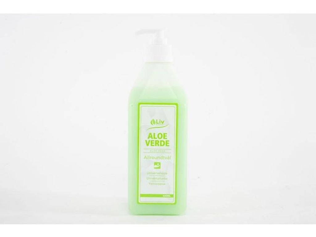 Återfuktande allroundtvål med Aloe Vera. Härligt återfuktande svagt parfymerad allroundtvål som rengör och återfuktar hud och kropp. Produkten innehåller Aloe Vera, som hjälper till att bibehålla en mjuk och välmående hud. Tillverkad i Sverige. - 600ml med pump - För både händer, kropp och hår - pH-värde i brukslösning ca 5,5 - Parfym: svagt parfymerad - Utseende: grön viskös vätska