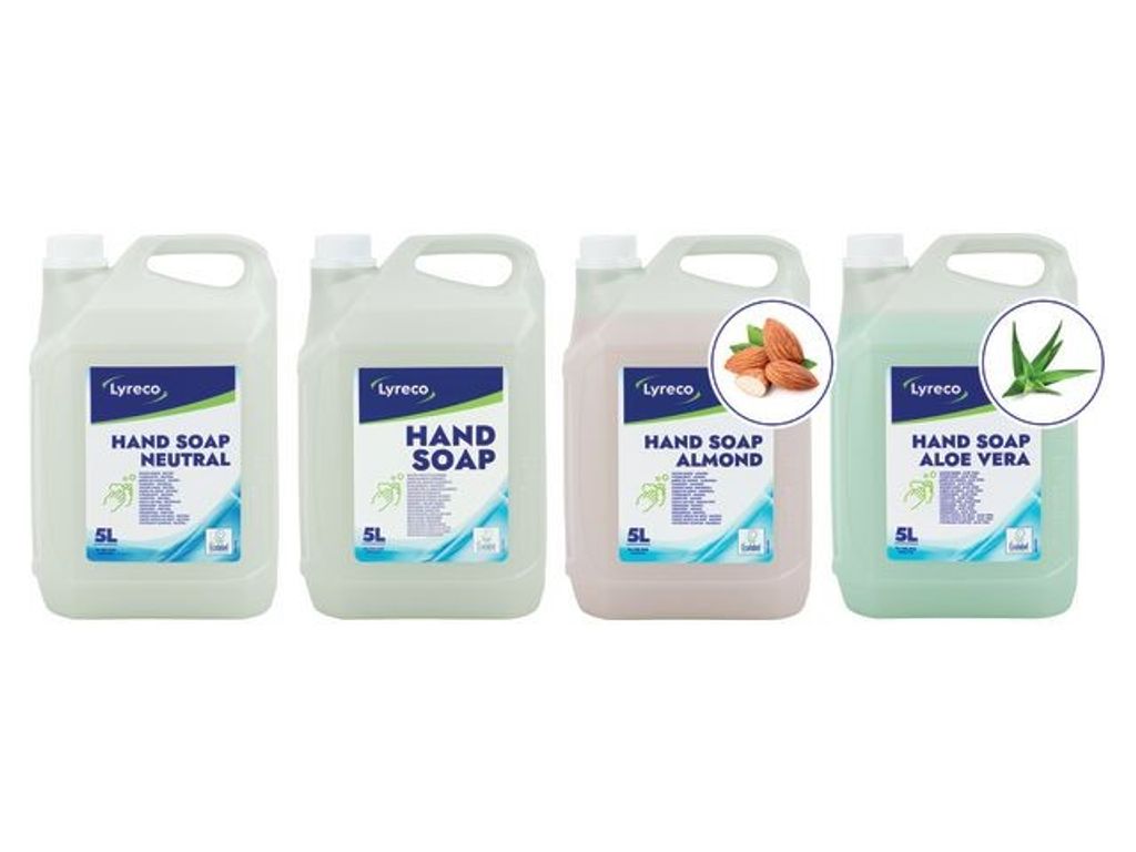 Beskrivning av Tvål LYRECO Mandel 5L Miljömärkt handtvål för daglig rengöring. Flytande handtvål för daglig användning. Tvålen rengör och skyddar huden aktivt, och doftar behagligt av mandel. - pH-värde: 7 - Lukt: Parfymerad - Utseende: Ljusrosa