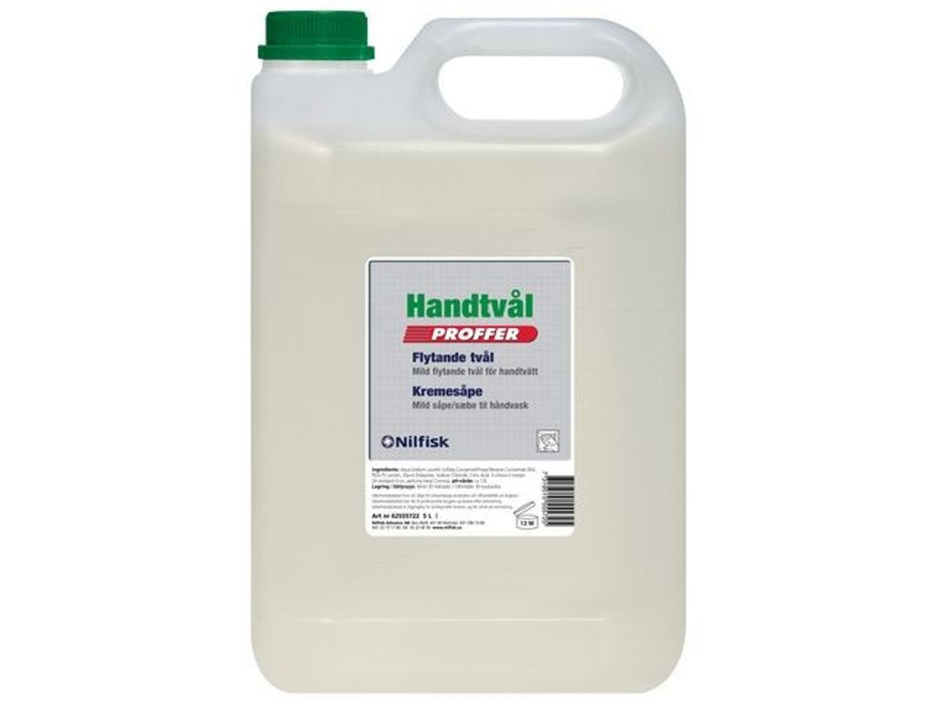 Den här milda handtvålen från Nilfisk är skonsam mot händerna och ger god handhygien vid varje tvätt. Den här stora dunken passar utmärkt för användning i badrum och på offentliga toaletter på kontor eller andra offentliga inrättningar. Den milda tvålen gör din hud mjuk och har en behaglig doft. Det är ett drygt alternativ och du kan enkelt förvara den flytande tvålen för användning under hela året, särskilt i miljöer med hög användningsgrad. - Dryg flytande handtvål - Perfekt för välbesökta offentliga toaletter - Snäll mot huden - Färg: Genomskinlig - Volym: 5 l