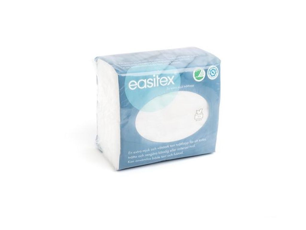 Högkvalitativ slät och extra mjuk vit torkduk. EasiTex extra mjuk är tillverkad av ett mycket mjukt och behagligt material, vilket gör att den är extra lämplig som tvättlapp för att torka, tvätta och rengöra känslig eller irriterad hud. Den kan användas både torr och fuktad och är perfekt för en rad användningsområden där ett extra skonsamt alternativ efterfrågas. Dessutom fungerar den utmärkt för torkning och desinfektion av diverse ytor som behöver vara helt rena, då den har extremt låga fibersläpp. Easitex extra mjuk är Svanenmärkt och rekommenderas av Asthma Allergy Nordic. Innehåller ej latex, silikon, PVC eller ftalater. - Uppfyller kraven på fibersläpp enligt SS-EN 13795-1:2019 - Struktur: Slät och extra mjuk - Material: Polyester och viskos - Andel förnyelsebart material: minst 50% - Svanen: Licensnummer 30230084