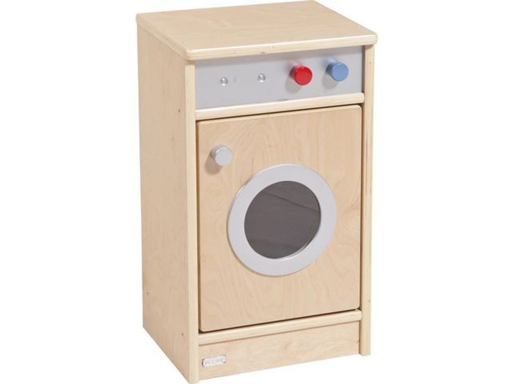 Gedigen och väldetaljerad tvättmaskinsmodul från Grocare-barnköksserie. Välbyggd och solid av massivt klarlackerad björk med många fina detaljer som gör köksleken verklig för barnen. Vridbara knappar, öppningsbar dörr med plexiglas samt kraftiga gångjärn med soft close-funktion. - Mått: B36xH62xD40 cm - Levereras färdigmonterad