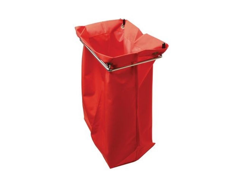 Beskrivning av Tvättpåse liten röd 23L Tvättpåse för smutsiga moppar. Gummerad insida. - Mått upphängd: 43x18x30cm -